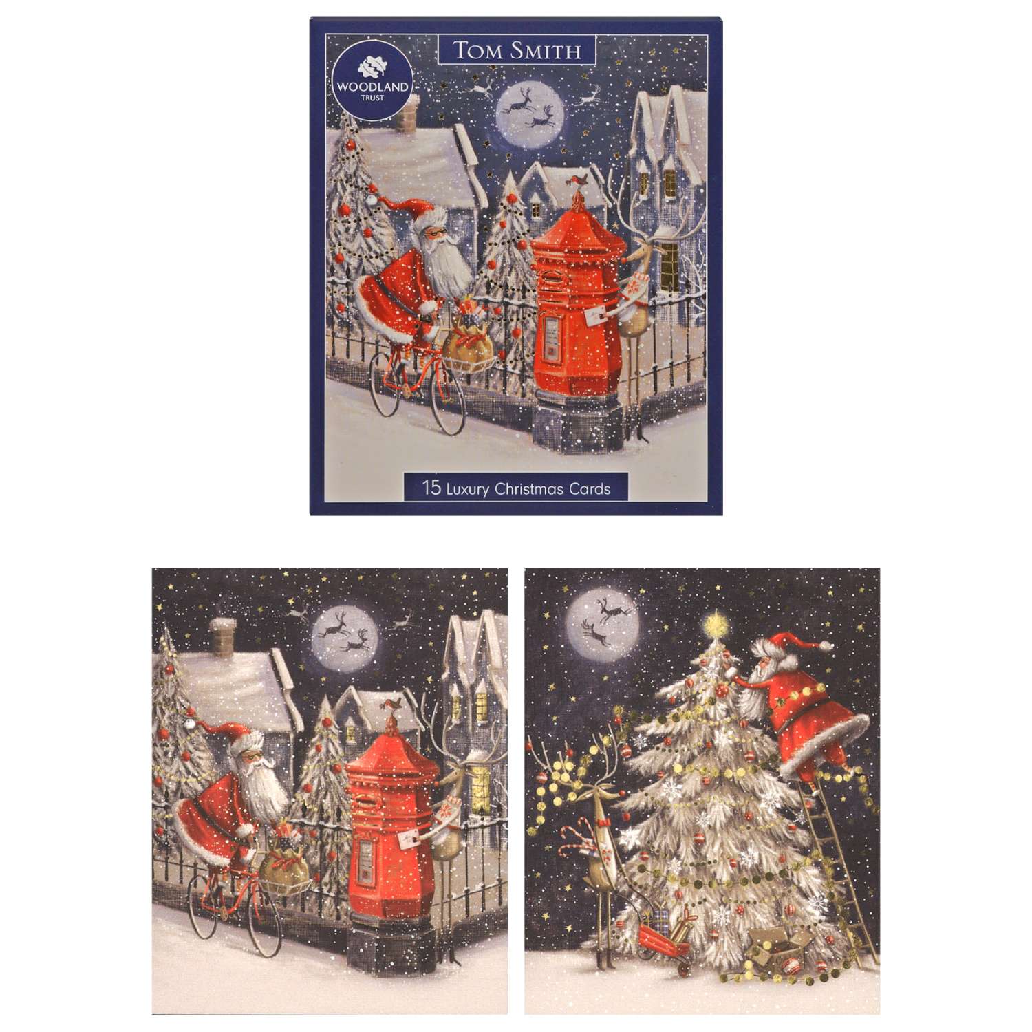 Tom Smith Luxury Boxed Christmas Cards 15 Pack - Santa